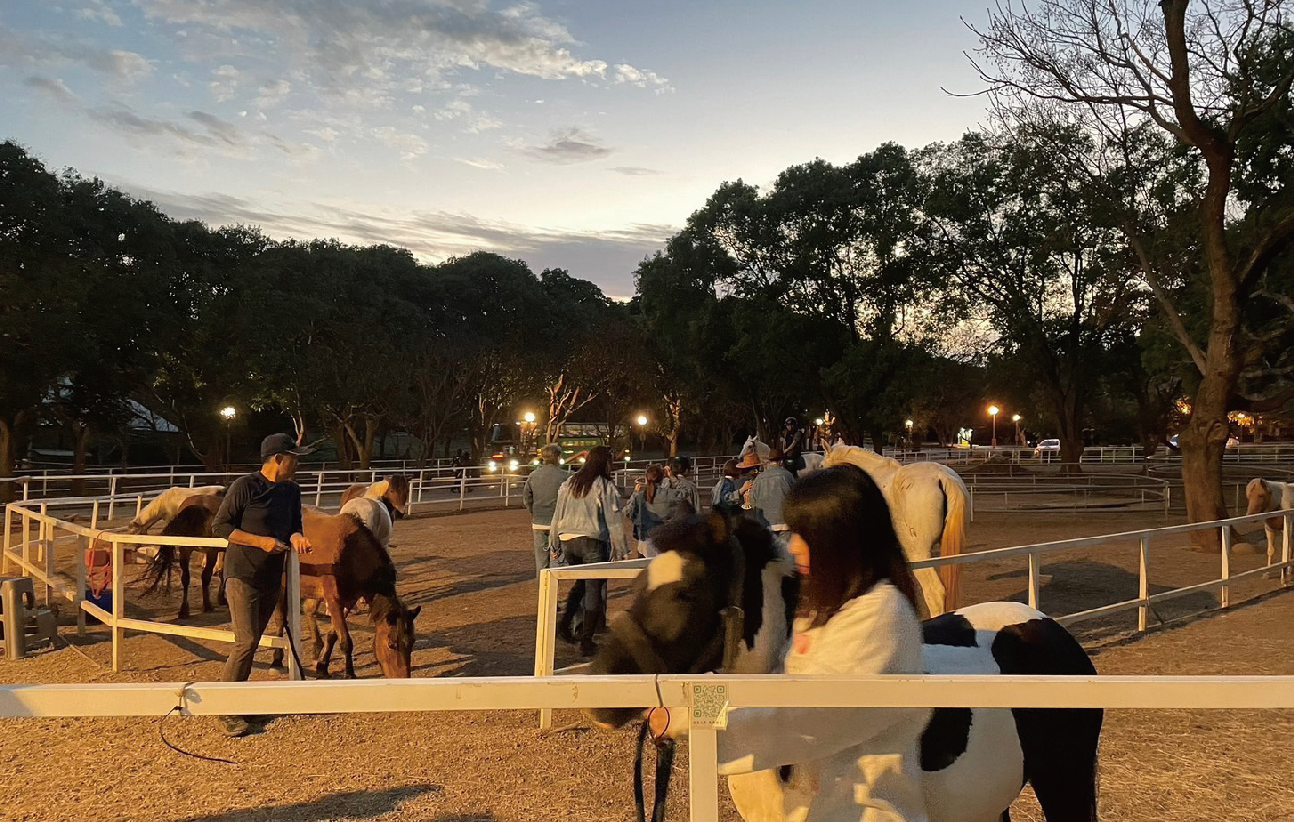 馬術教練是一位有生之年幾乎都跟馬在一起的「職人」,在他的引導下;我們首先藉由餵食來接觸馬兒,讓大家降低對馬的恐懼感,畢竟大家都沒這麼近距離接觸過這麼大型的動物。正當大家拍照跟餵食的很開心時,教練道出了餵食這件事背後的真意,原來恐懼這件事是相對的,我們怕馬,其實馬怕我們更多,藉著餵食馬兒這件事,不僅僅是降低大夥對馬的恐懼,更多的是讓馬兒能降低對我們這群陌生人的戒心。